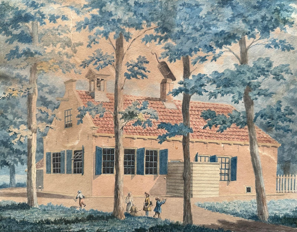 Arienne Cohen – Brandwijk – Nodelijk schonk ons een aquarel uit 1898 (zie hieronder), met als voorstelling de Openbare School op de Brink met op de voorgrond schoolkinderen. De kunstenaar is onbekend, de aquarel zit in een antieke lijst, meet 21 x 27 cm en was ooit in bezit van Arienne’s grootvader Arie Post.