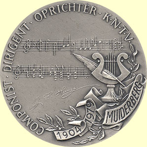 In 1979 werd een zilveren herinneringspenning uitgegeven, 75 jaar na het overlijden van de beroemde Muiderberger. Aan de ene kant staat zijn borstbeeld dat ook in het monument is opgenomen. Op de keerzijde staan twee notenbalken uit de hymne ‘Sancta Caecilia’. De door Koninklijke Begeer geslagen zilveren penning heeft een doorsnee van 63 mm en weegt 131 gram. De penning was in het bezit van Klaes Sierksma en werd in 2025 via Facebook door zijn zoon Hylke voor € 175 te koop aangeboden. Koper werd een makelaar uit Muiderberg.